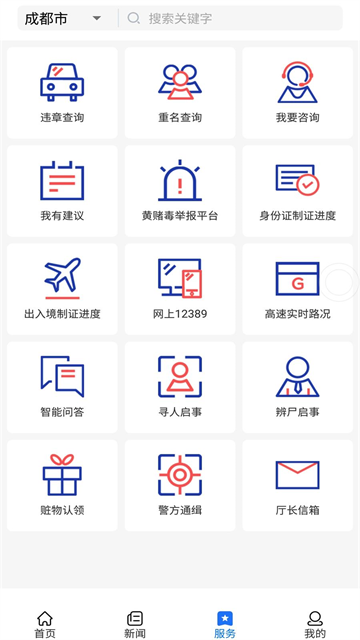 2、治安服务,随时管理省内治安环境;网安服务,网络安全一键咨询;交管服务,交通信息实时查看,了解交通概况;办证中心,网上办证更加便捷。