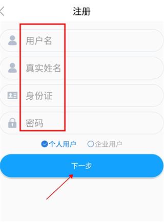 2、这里有个人用户和企业用户,选择个人用户填写自己信息,点击下一步,按照流程即可完成注册