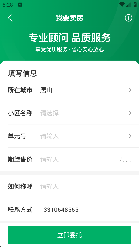 3、最后将房屋的信息填写完成点击委托即可