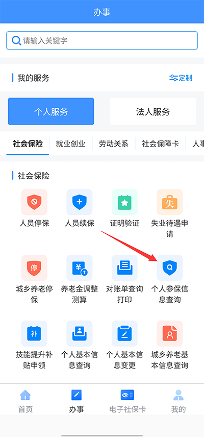 2、进入社会保险服务界面,点击“个人参保信息查询”即可
