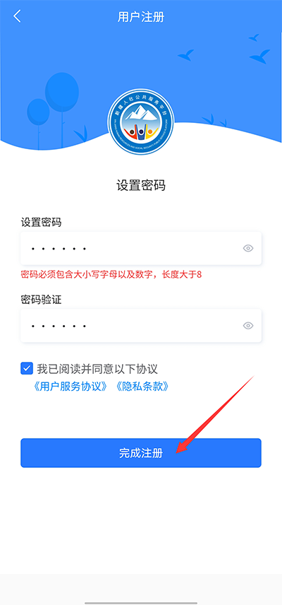 4、最后设置密码后点击完成注册即可