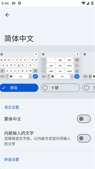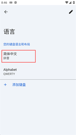 4、设置完成后,如果你想改键盘、添加键盘的话可以点击设置进入语言选择虚拟键盘【Gboard】进入