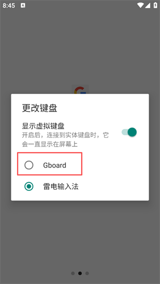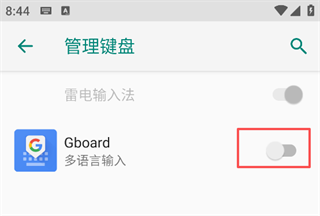 3、在更改键盘板块,选择Gboard作为默认输入法