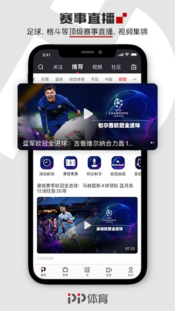 PP体育直播是一款体育赛事直播平台,该平台网罗各大篮球足球精彩赛事,涵盖NBA、CBA、西甲、意甲、德甲、法甲、中超、世预赛、欧冠赛、欧联赛等,支持视频在线观看,当如果你没有赶上实况直播,不用担心在这里也能找到你想看的录播视频。赛事IP周边、运动健身、达人种草、直播热卖等栏目多元,惊喜不断内容不断,更有每日的球类赛事最新资讯实时推送,在看视频的同时还能通过发送弹幕与其他球迷一起吐槽互动,每天尽情观看国内外精彩体育视频,是一款体育爱好者必备的直播应用。