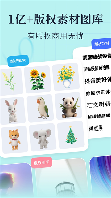「海量资源」50w+精美模板,8000w+高清图片,15w+原创插画及素材,上千款可商用字体无限畅用。