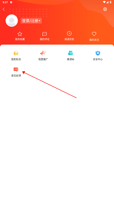 2、在个人中心界面内找到并点击“意见反馈”;