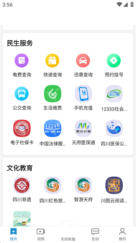 3、还有民生服务以及文化教育:电费查询、快递查询、违章查询、四川非遗、红色旅游......