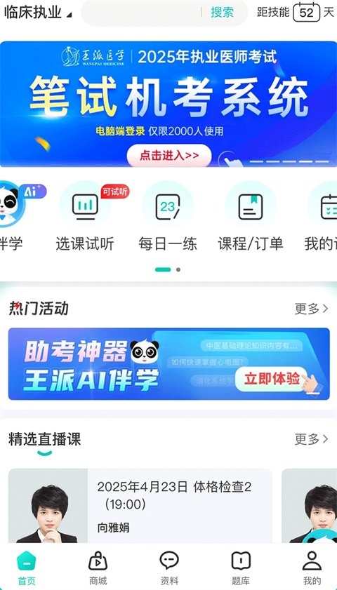 v26.01.17王派医学App是武汉王派教育科技有限公司旗下的一款专业医学备考辅助学习软件,覆盖临床、中医、口腔、护理及药学等十余个核心医学领域,功能涵盖免费直播与录播课程、海量题库训练、全真模拟考试及每日一练等,全方位满足不同考生的学习需求。