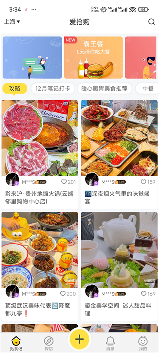 4、除此之外,平台汇聚上万名美食达人,通过"觅食记"分享真实探店体验和攻略