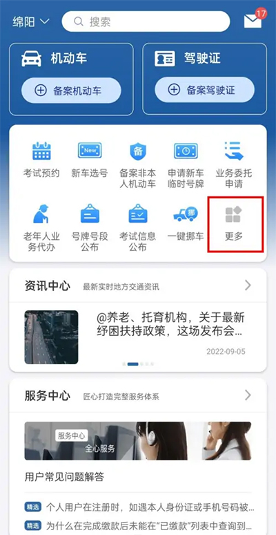 1、在本站下载交管12123成绩查询app,打开并登录我们的账号后,在主页点击更多选项