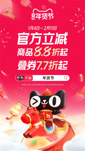 天猫年货狂欢季来了,官方立减商品8.8折起,叠券7.7折起!
