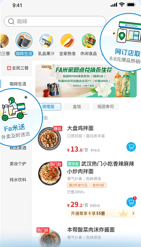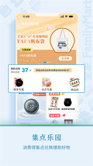 4、会员中心:下载Fa米家注册登录为全家会员后,购物时出示会员码结账即可获得会员积分,累计的积分可在下次消费时直接抵扣现金哦~