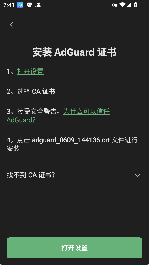 ● 启动AdGuard应用程序。