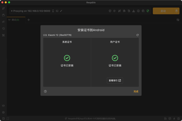 注意,Reqable无法检测到非Root设备的用户证书安装状态,会一直显示未知证书安装状态。