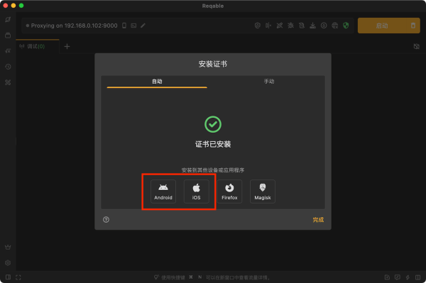 如果您有分析移动端应用流量的需求,必须在移动端安装CA根证书,我们已经在Reqable中内置了Android和iOS证书安装的指引。