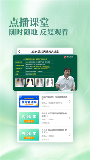 海量的医师、药师、医学考研视频教辅课程,随时随地想学就学,打破学习环境地点的束缚;从公开课、到品质精讲、再到精品冲刺,循序渐进地突破学习,让学习更方便、更轻松、更加牢固的提升!
