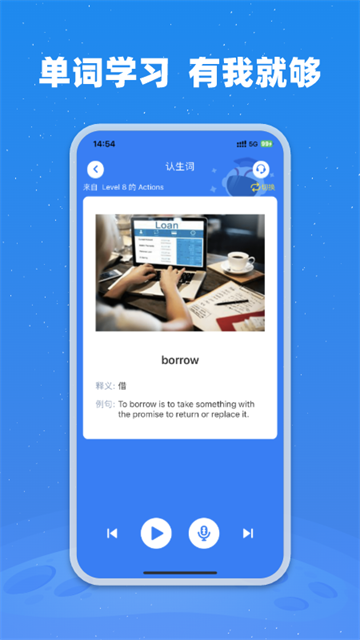 支持用户对认生词进行学习,实时播放单词的发音,提供注释解析,加深记忆;