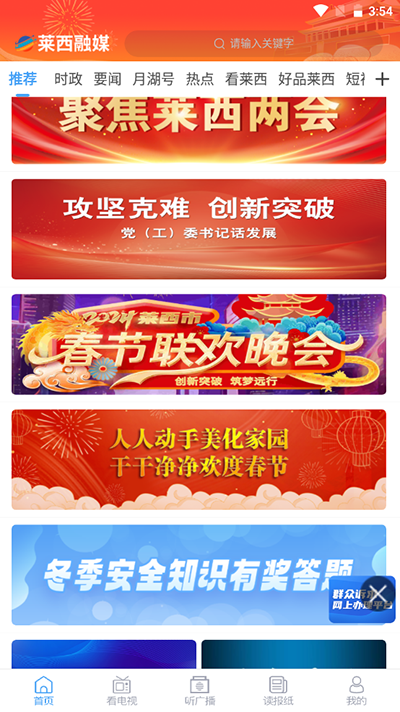 莱西融媒app是专为莱西市居民朋友打在的一款本地新闻客户端,集电视视频、新闻资讯、政务信息、社会热点、生活服务等于一体,用户可以在平台上享受电视广播直播、点播和回看服务,阅读电子报纸、参与直播互动,满足随时随地观看电视、了解信息、互动爆料的需求。