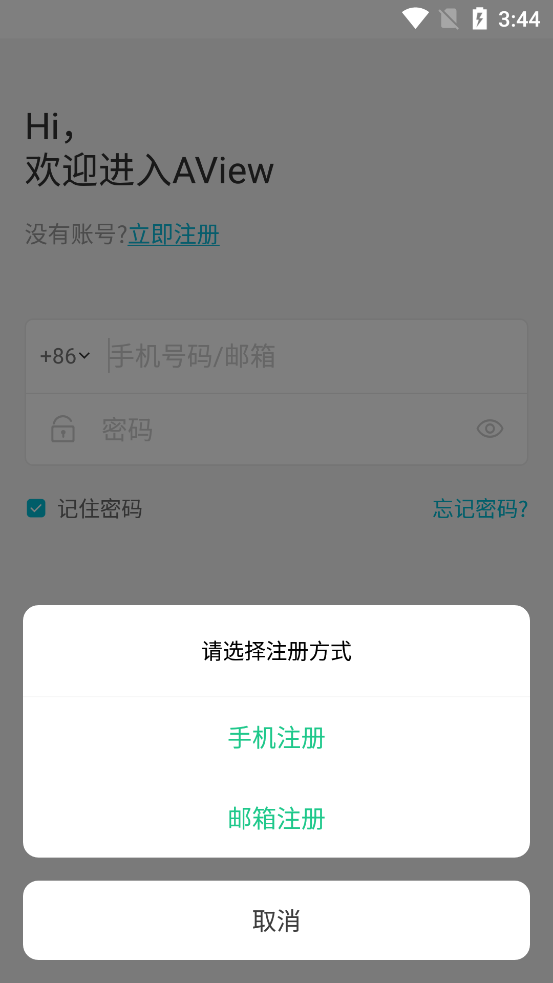 1、打开AView监控摄像头App,注册并登录账号