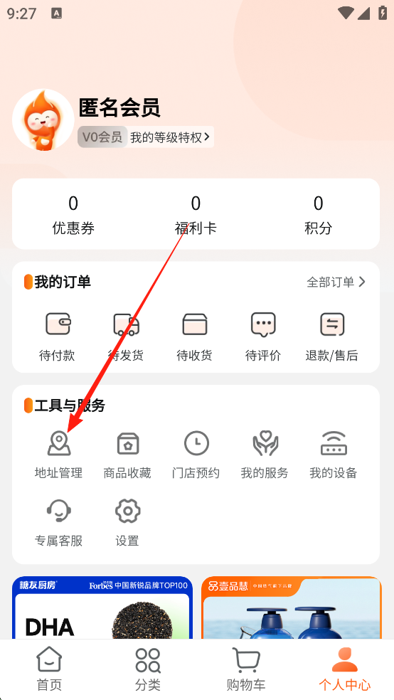 便民生活、在线购物(美食特产、家具家电、燃气具)、积分兑换