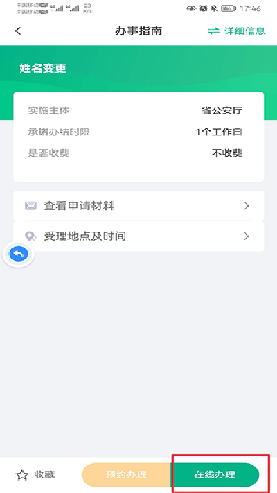 2、点击在线办理;