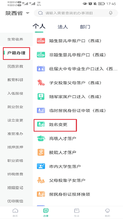 陕西政务服务平台怎么变更姓名?
