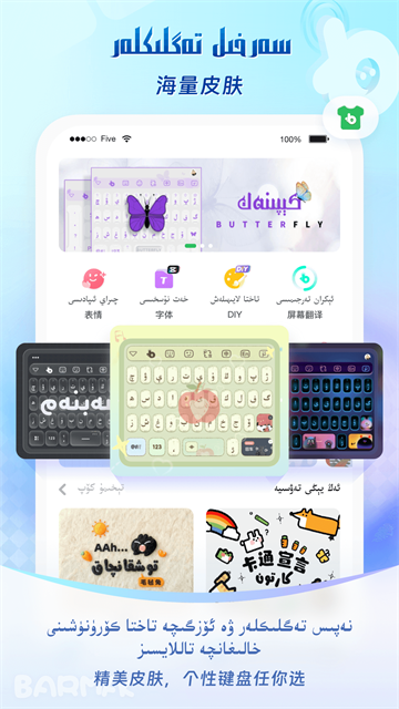 BARMAK输入法是一款专业面向服务于新疆和使用维吾尔语言的人民群众的实用工具,在这里大家可以使用维语进行输入打字,为我们的维吾尔语用户提供更舒适便捷的打字体验。当然它也不仅仅是只有维语,还有、汉语、英语,还有在线斗图功能,通过使用这款软件可以实现汉维互译,打字超级快,使用又方便,还不下载体验一下吧。
