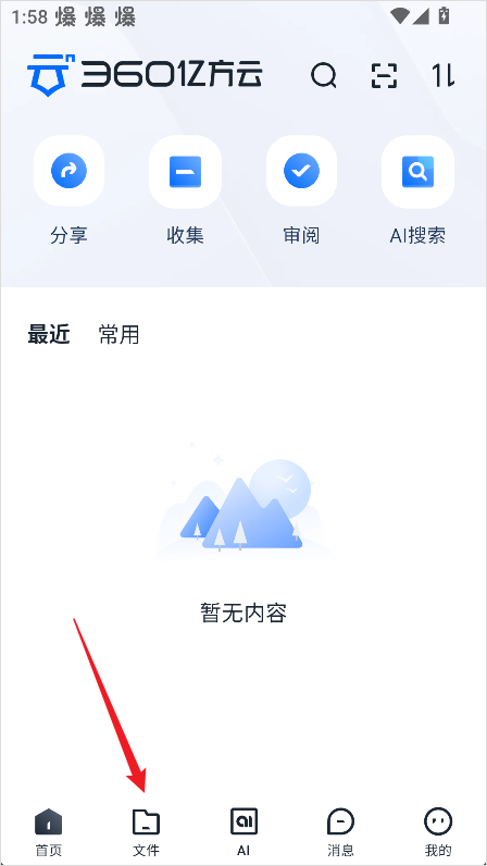 1、打开亿方云App,进入主界面后点击下方导航栏的【文件】,进入文件管理页面。