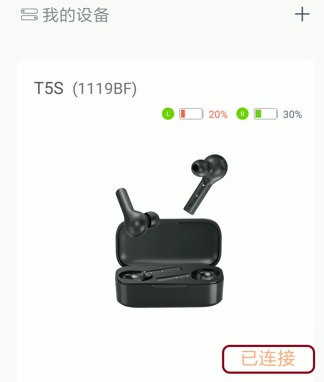 连接成功后,可以看到耳机的电量情况及默认设置。