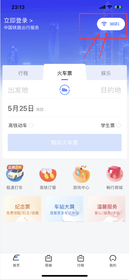 掌上高铁app如何连接高铁wifi
