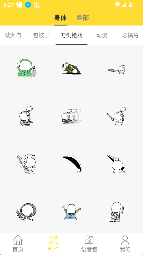 2、这里提功了身体和脸部自定义功能,根据自己的需求选择