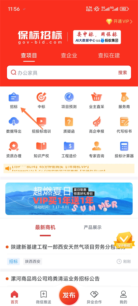 1、打开保标招标网官方手机版,点击招标