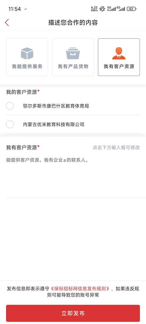 5、除此之外,你也可以自己发布招标消息