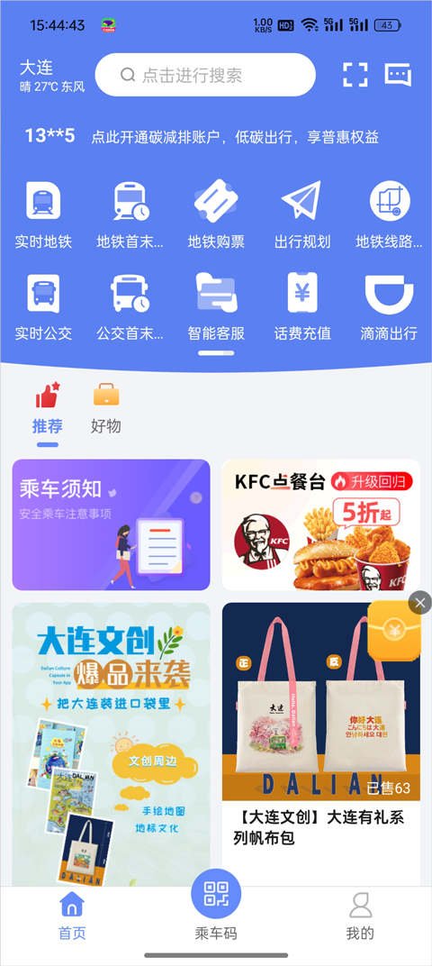 扫一扫乘车码,快速进出地铁站、公交站,告别排队充值和购票。