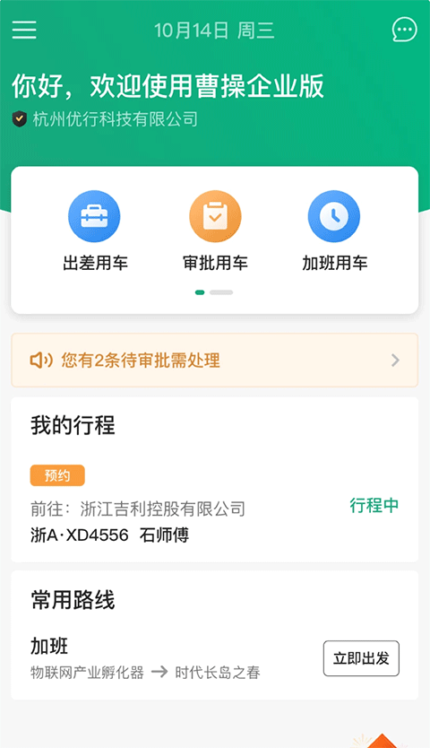 精确设置用车时间和地点,规范员工加班用车。