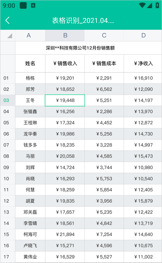 拍摄表格图片,精确定位表格数据,智能解析表格文字,然后快速生成Excel表格文件,下载或分享Excel表格。