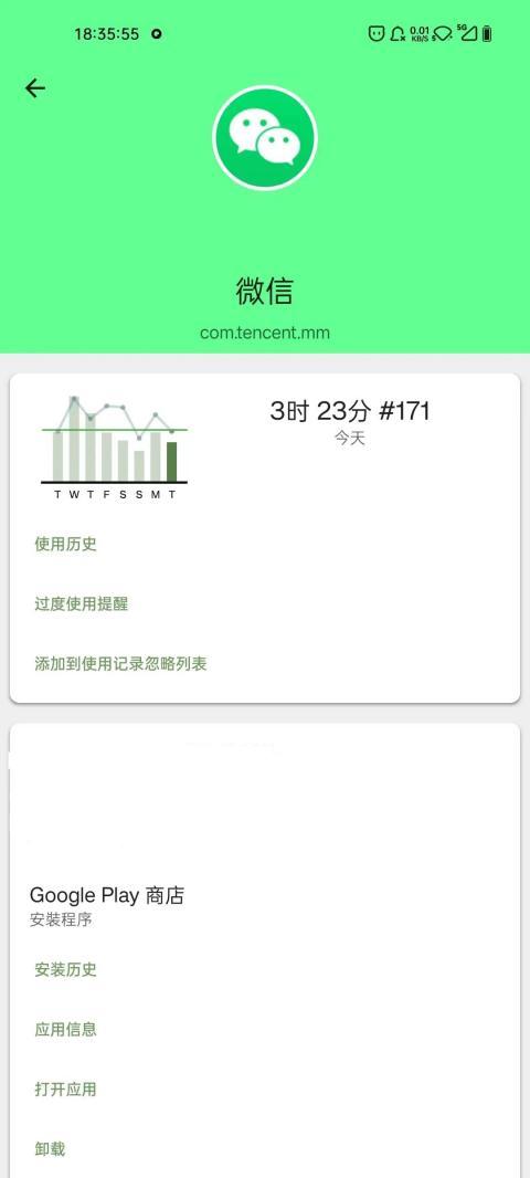 点开一个想要查看的软件,就能能查看近一周使用时长统计,更牛掰的是,它甚至能查看应用版本号以及初次安装时间