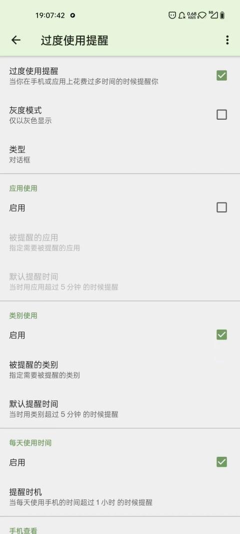 软件里面还有个过度使用提醒,使用达到一定时间后就会主动提醒我们减少手机使用时长。