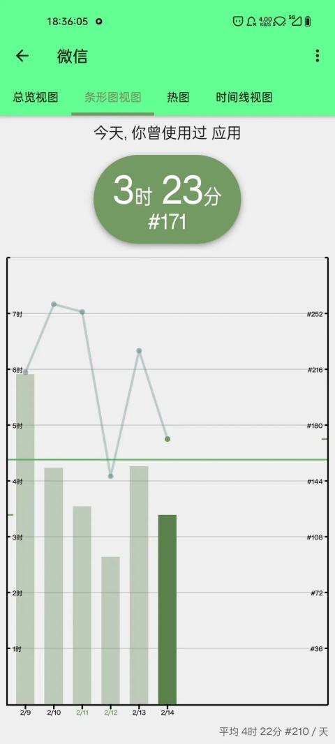 另外,它还可以根据热图或时间线的形式显示软件的使用时长与打开记录,这样一来不但可以监督自己手机的使用情况,还可以监视是不是有人偷看自己手机了