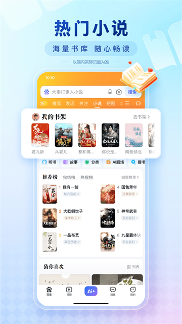 海量正版小说、短剧随心看,小说支持书架列表、阅读进度可多台设备自动云同步。短剧涵盖都市、爱情等多种题材,智能推荐,精准匹配你的短剧喜好。