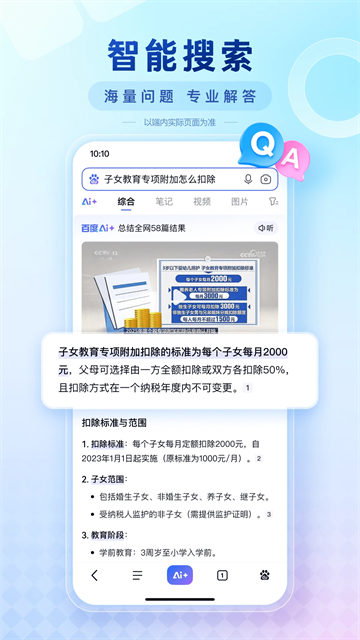 系统搭载文心一言大模型底层,可深度、精准理解你的意图, 从搜索到内容推荐,从语音交互到图像识别,百度App为你带来全方位的AI体验
