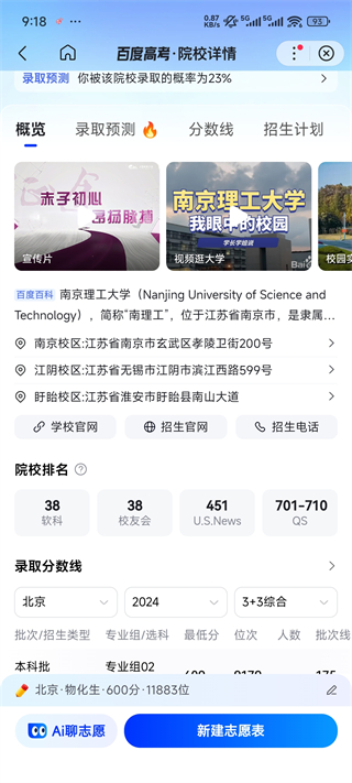 6、点击概览还能看到学校的一些介绍和录取分数线、专业分数线等等。