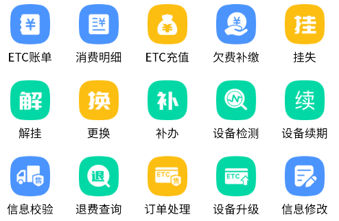 -提供通行费账单查询、设备检测、账户充值、设备升级、信息变更、设备更换及补办、设备续期等多种售后服务。