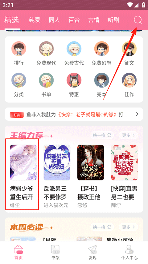1、打开书耽APP,在搜索栏搜索您想要阅读的小说或者在下方分类筛选;