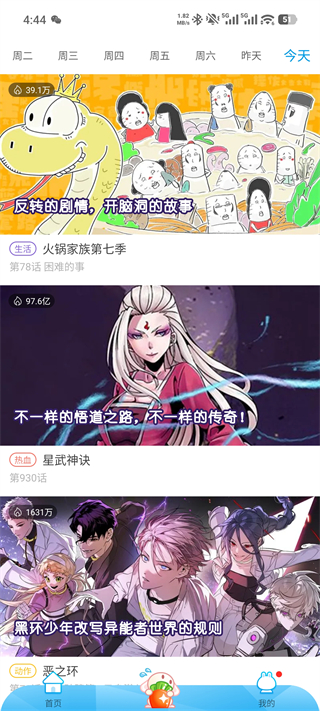 进入更新页,按日期查看漫画更新,标记追漫清单,及时阅读最新章节。