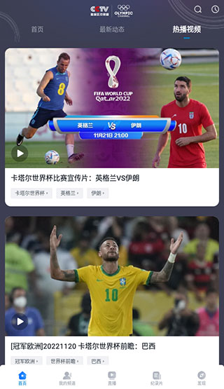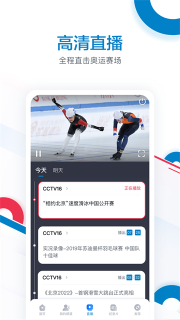 CCTV奥林匹克频道APP以中央电视台奥运节目为主,辅以CCTV-5、CCTV-5+及其他奥运类赛事内容,力求在超高清视频技术条件下完美呈现奥林匹克赛事新闻