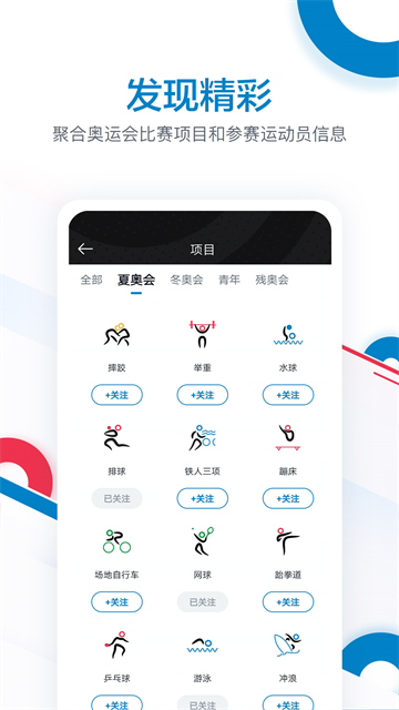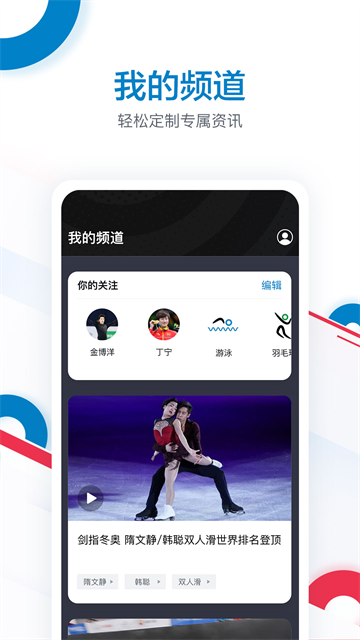 用户可自主订阅奥运项目、运动员内容,也可观看智能的推荐内容