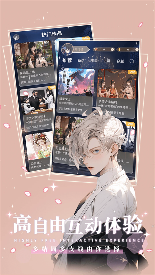 深情帝王 霸道总裁 温柔学长 神秘明星;高冷小冰女王 个性活泼 呆萌学妹 粉丝迷妹聊天对话;男女性向游戏迷福音,多种角色等你攻略聊天游戏。