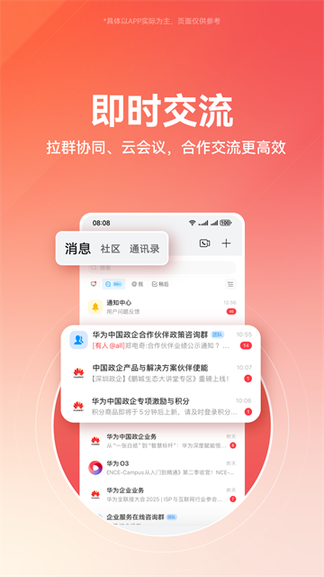 v6.0.0100华为亿企飞是华为针对商业市场海量伙伴打造的数字化移动作业平台,不仅是一款移动工具,也是华为企业业务面向分销商、工程商提供产品资讯、解决方案、产品配置报价、项目开局与运维、社群互动等服务的综合平台,华为亿企飞app汇集了华为商业市场主推的热销产品、场景化方案、成功案例、热门资讯等精品内容,用户可以通过软件轻松获取华为最新推出的产品信息和解决方案,了解行业动态和商业趋势。