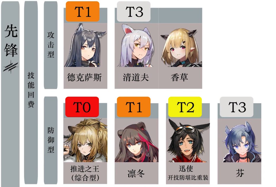 通常部署费用较低,技能与回复部署费用相关,且可以较好地应对前期出现在战场上的敌人。